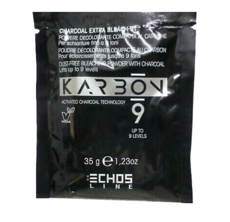 Polvere decolorante in polvere al carbone per schiariture fino a 9 toni. Può essere miscelata con acqua ossigenata Echosline a 7 vol (2,1%), 10 vol (3%), 20 vol (6%), 30 vol (12%).